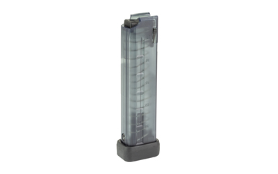 This B&T magazine is a 20-round 9 mm magazine compatible with the B&T MP9, TP9, APC9, and SPC9.