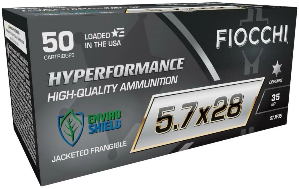 he Hyperformance jacketed frangible cartridge hosts a 35-grain copper core and copper jacketed projectile. Featuring a polymer tip to ensure proper feeding through all 5.7x28mm chambered firearms this lead-free cartridge delivers rapid expansion to prevent over-penetration. Whether fired from a handgun or a carbine this cartridge offers consistent ballistic and terminal performance for defense hunting and range applications.