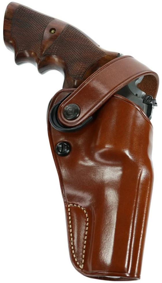 The DAO can be worn strong side or crossdraw at the user’s discretion. The holster employs a retention strap for simplicity and security in the brush. The retention strap has a large polymer tab to aid in snapping and unsnapping with a gloved hand. Tension screw adjustments allow for a custom fit to your revolver.