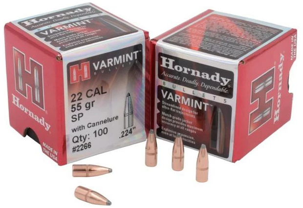 Hornady Traditional Varmint Bullets .22 cal .224″ 55 gr SP CANN BT 100/ct