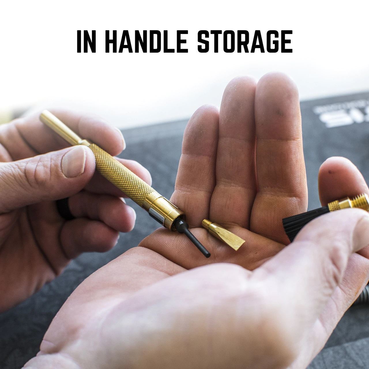 An essential tool the Armorers Pistol Tool by Otis offers four tools in one to service and maintain your semi-automatic pistols such as Glock Sig Sauer Smith & Wesson Ruger Taurus FNH H&K. Simply unscrew the nylon end brush to reveal a storage area for additional tools. Disassemble your pistol with ease using the 3/32″ pin punch to knock out pins. Install adjust or remove aftermarket front sights with the 3/16 nut driver. Remove the trigger connector or scrape carbon with the brass scraper. Brush off any debris with the nylon end brush. The main body of the tool is textured for improved grip while working. Clip the tool in your pocket or in a compartment of your range bag.