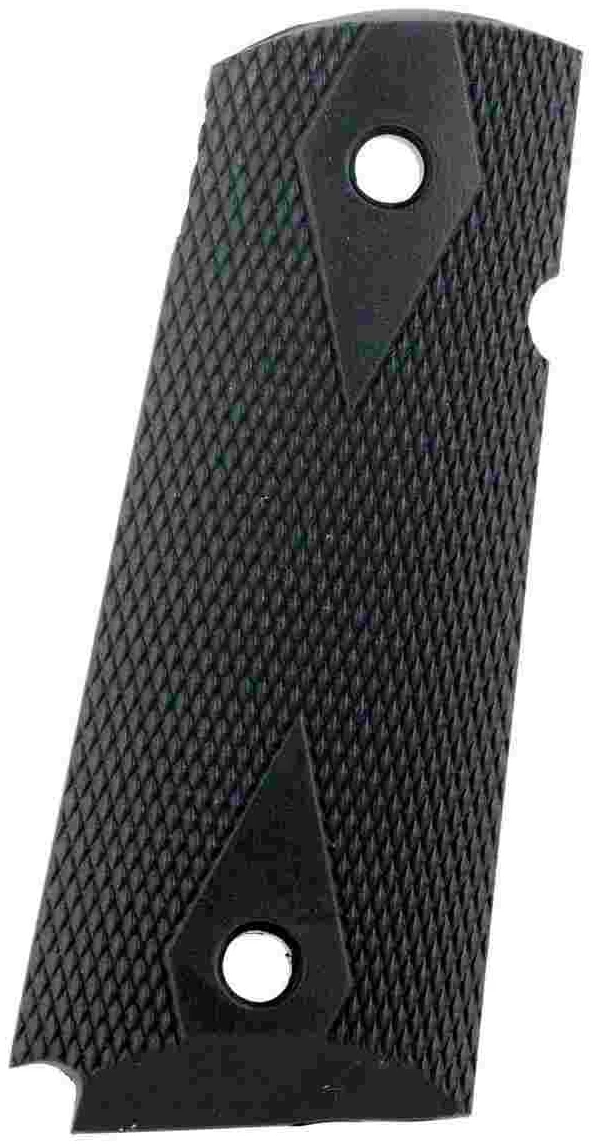 These rubber side panel grips for 1911-style Compact models are the same width as the factory grips. The double diamond checkering pattern gives the user a more secure hold as well as maintaining the classic look of the compact GM 1911s. They are highly sculptured with palm swells for a superior fit.