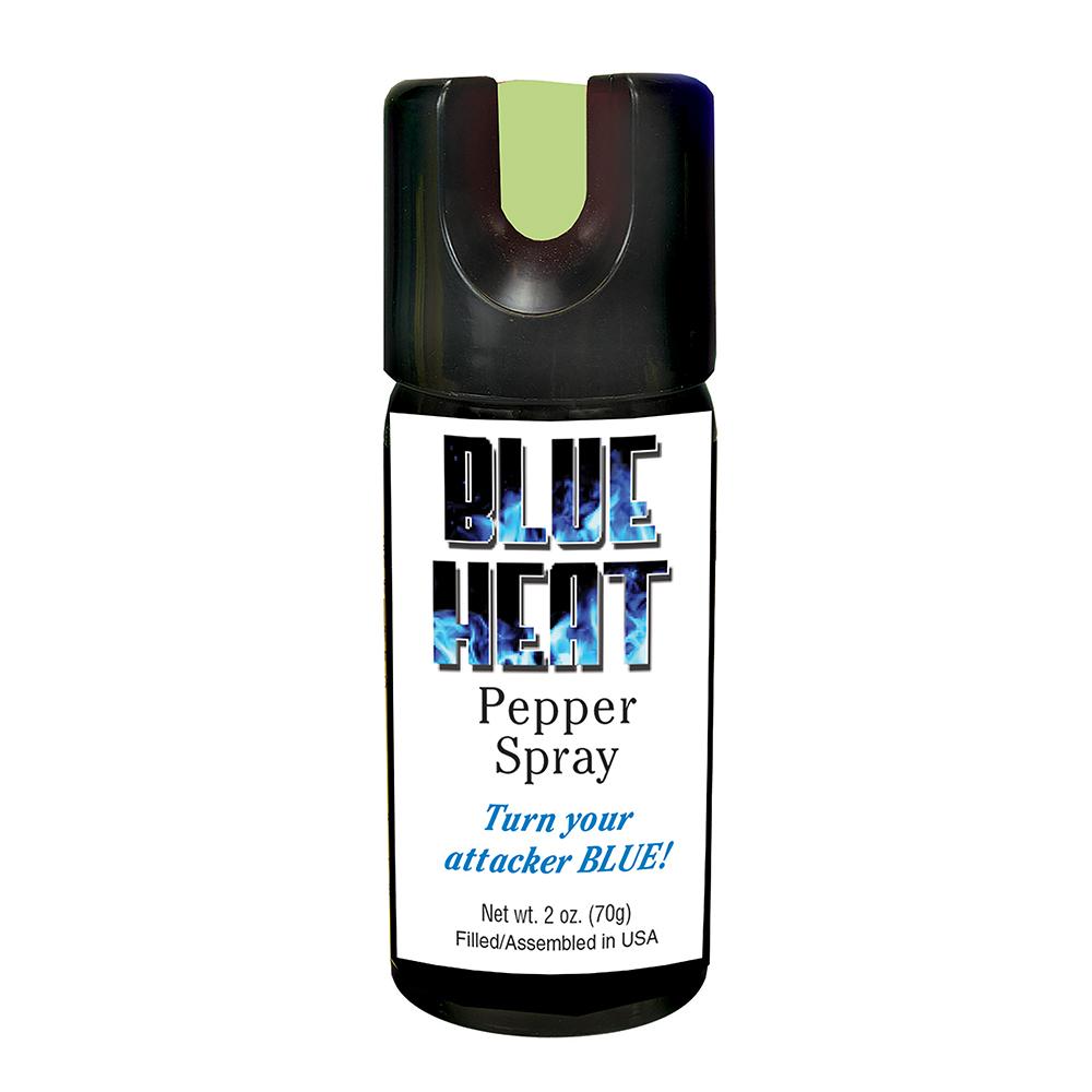 The Eliminator Blue Heat pepper spray is the perfect self-defense weapon that you can carry with you every day. The 2 oz canister has a flip-top safety actuator that helps prevent accidental discharges and makes it easy to fire quickly. When used two things occur. First and foremost the powerful 2 million SHU (Scoville Heat Units) formula will cause an instant burning sensation to the eyes nose throat skin and lungs of an attacker. This can last for up to 45 minutes giving you plenty of time to escape. Secondly the Blue Heat contains a blue dye that will mark an attacker's skin for up to 48 hours. This makes it easier for law enforcement to identify them if they escape to prevent them from trying to harm anyone else. Each canister contains 10-12 one second bursts that can reach a distance of 8 to 12 feet. On top of that the pepper spray has a 36-month shelf life and is Made in the USA.