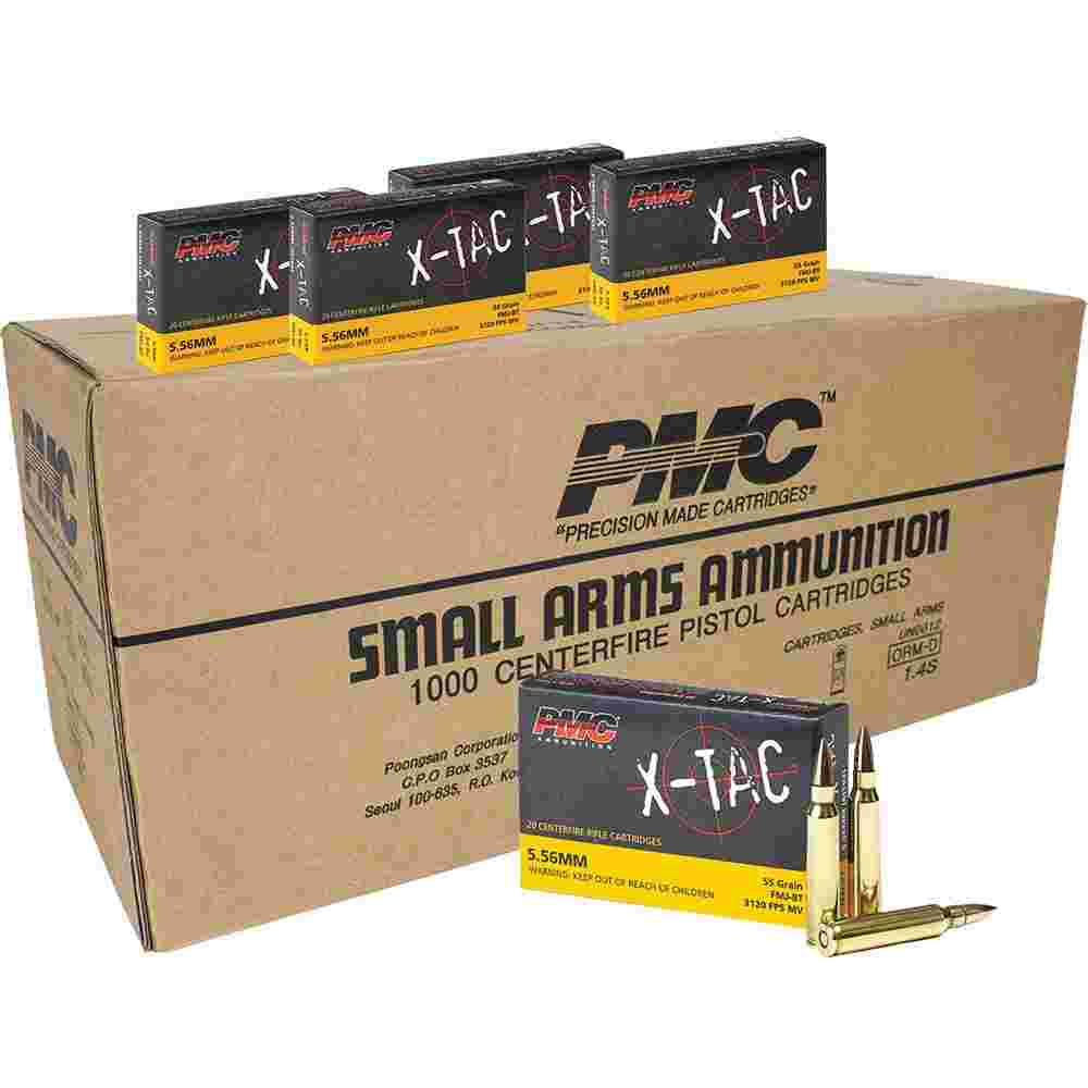 PMC X-Tac Rifle Ammunition 5.56x45mm 55 gr FMJBT 3120 fps 1000/ct